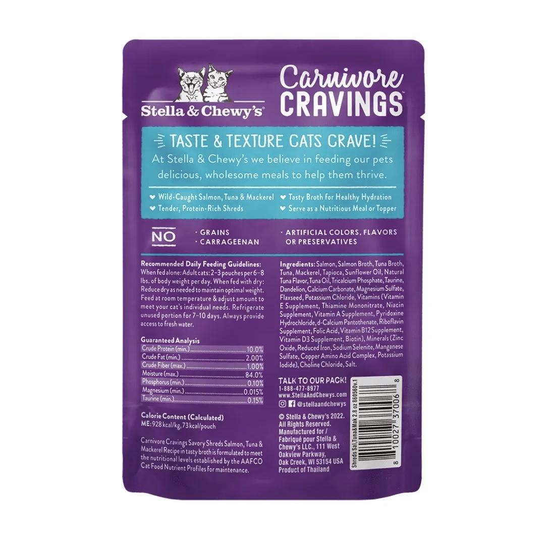 Stella & Chewy's - 成貓濕糧滋味包 為您的貓貓提供所需的營養。即使是最挑剔的貓咪也會對這種令貓難以抗拒的味道驚嘆不已。這款富含蛋白質、鮮嫩多肉的肉絲滋味包,有助於吸引活潑的貓咪保持水分。它可以作為一頓完整的膳食,也可以作為乾糧的配料。