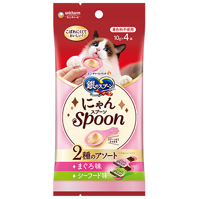 日本「銀湯匙」美味肉醬系列推出全新湯匙型設計肉醬,令貓咪方便進食又不易灑落將魚肉搗碎製成順滑可口的肉泥小食。