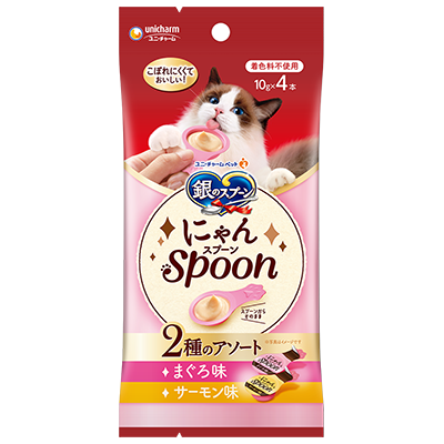 日本「銀湯匙」美味肉醬系列推出全新湯匙型設計肉醬,令貓咪方便進食又不易灑落將魚肉搗碎製成順滑可口的肉泥小食。