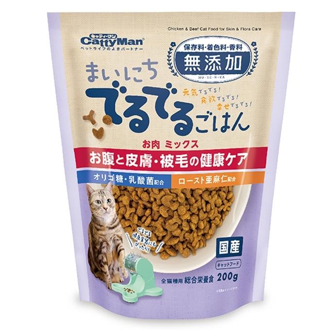 | 原材料 | とうもろこし、肉類(チキンミール、チキンレバーパウダー、ビーフパウダー)、コーングルテンミール、小麦粉、脱脂大豆、動物油脂、魚粉、フィッシュエキス、おからパウダー、ローストアマニ、オリゴ糖、乳酸菌、ミネラル類(Na、Cl、Ca、P、K、Zn、Fe、Mn、Cu、Co、I)、ビタミン類(A、B1、B2、B6、B12、C、D3、E、K3、コリン、ニコチン酸、パントテン酸、葉酸、ビオチン)、アミノ酸類(メチオニン、リジン、トリプトファン、タウリン)、酸化防止剤(ミックストコフェロール、ハーブ抽出物) |