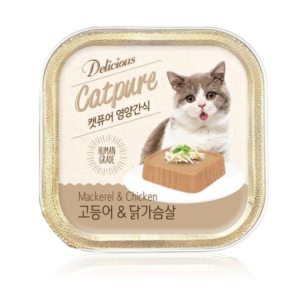 [Cat Pure-貓罐]天然無穀物低脂|鯖魚+雞肉|100g|(肉泥慕絲)|韓國製