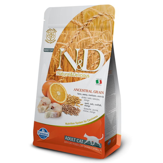 新鮮鱈魚(27%)、脫水鱈魚(26%)、鯡魚油、斯佩爾特小麥(10%)、燕麥(10%)、脫水甜菜漿、豌豆纖維、脫水胡蘿蔔、脫水苜蓿、菊糖、果寡醣、甘露寡醣(萃取自酵母)、脫水甜橙(0.5%)、脫水蘋果、脫水石榴、脫水菠菜、洋車前子(0.3%)、脫水藍莓、氯化鈉、乾燥啤酒酵母、薑黃根(0.2%)、葡萄糖胺、硫酸軟骨素。