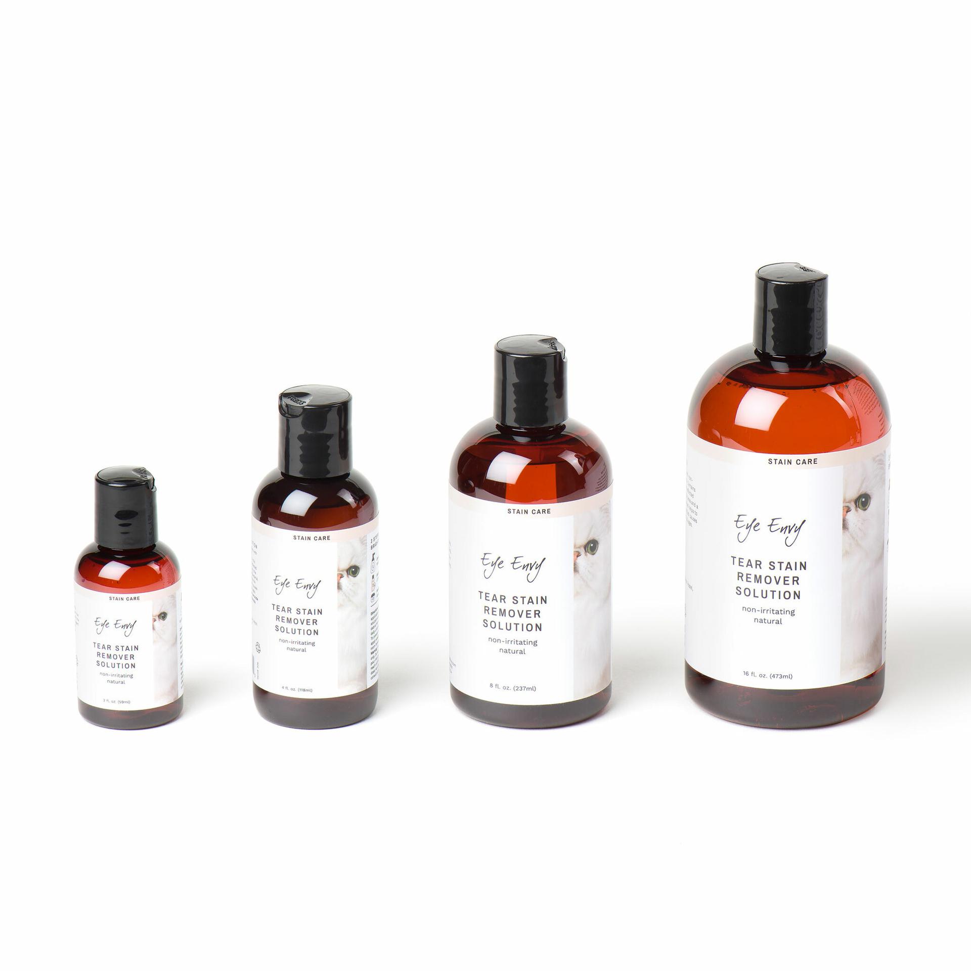 Eye Envy® Tear Stain Remover Solution 是第二步,在 3 步系統中安全去除難看的淚痕。我們的解決方案僅結合無刺激性的天然成分,配方可有效解決問題的根源,並包含膠體銀 –一種關鍵礦物質,有助於控制和阻止導致難看、有異味的淚痕的細菌的生長。