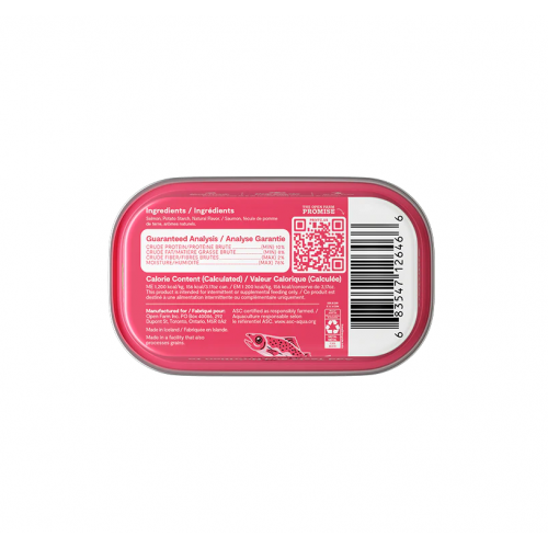 - 在冰島採用世界上最好的原料製造,100%人類級食品 - 絲滑慕斯質地,貓咪無法抗拒的滋味,可混合乾糧同時食用 - 95% ASC認證新鮮冰島魚 - 不含穀物和豆類,有助緩解食物過敏 - 100% 可追溯的人類級成分 成分 三文魚、馬鈴薯澱粉、天然香料 保證分析 粗蛋白(最低)10% 熱量(ME) 1200 kcal/kg , 156 kcal/can 冰島製造 #營養分析及成份, 請以包裝說明為準