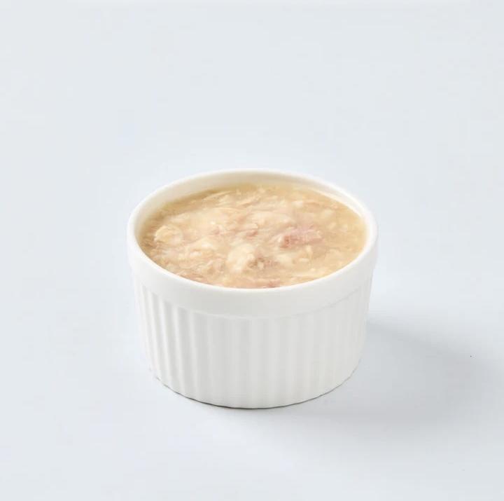 吞拿⿂、蟹肉棒、改性木薯澱粉、維生素、礦物質、低聚果糖(FOS)、絲蘭、酵母萃取物、氯化膽鹼、牛磺酸、磷蝦油、L-肉鹼、L-離胺酸、維生素E、椰子油(MCT) 34.8Kcal/ 100g made in ThailandPramy 功能性貓濕包[肉汁系列] - 室內貓配方 / 高級白肉吞拿魚+蟹肉70g