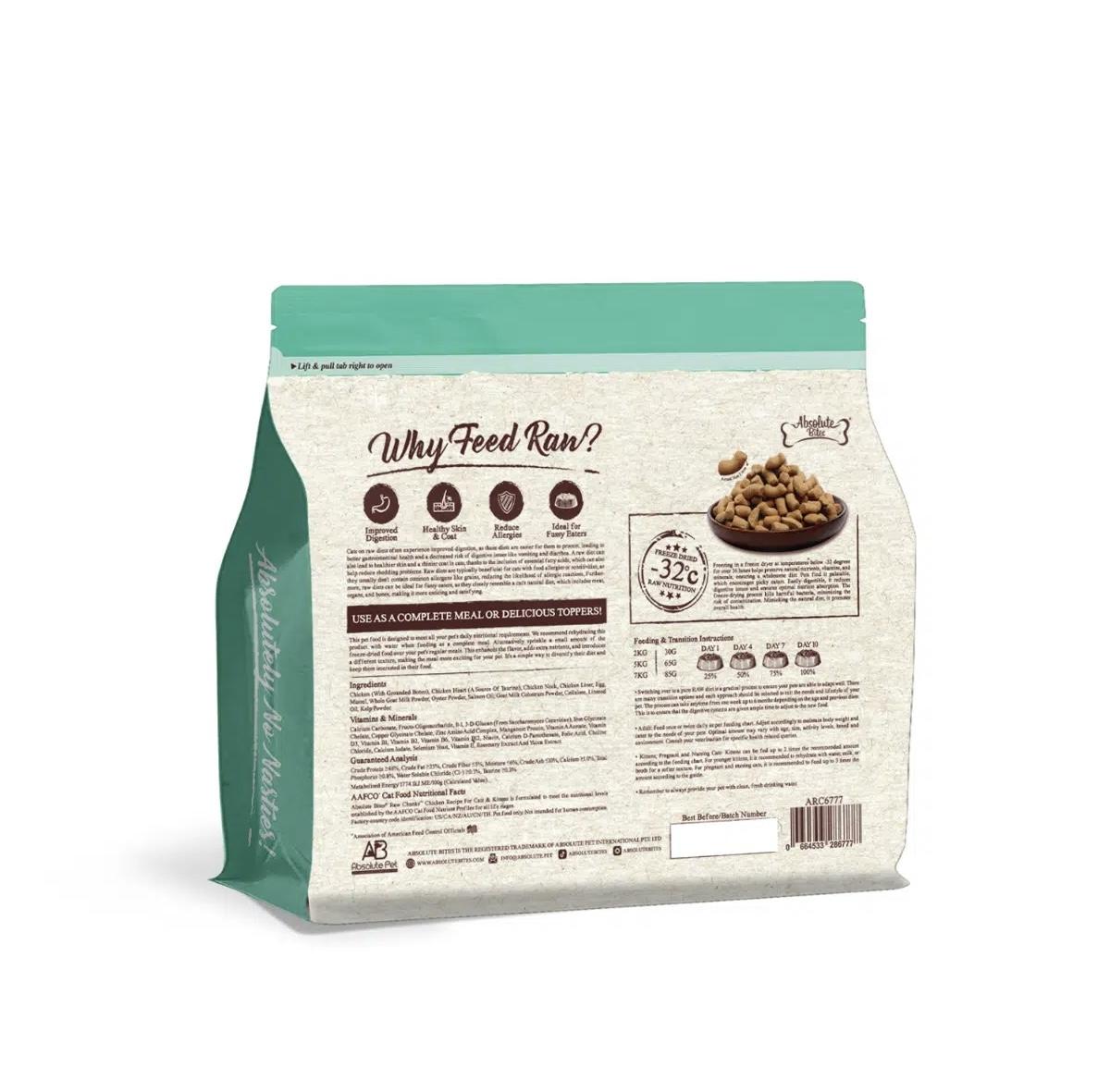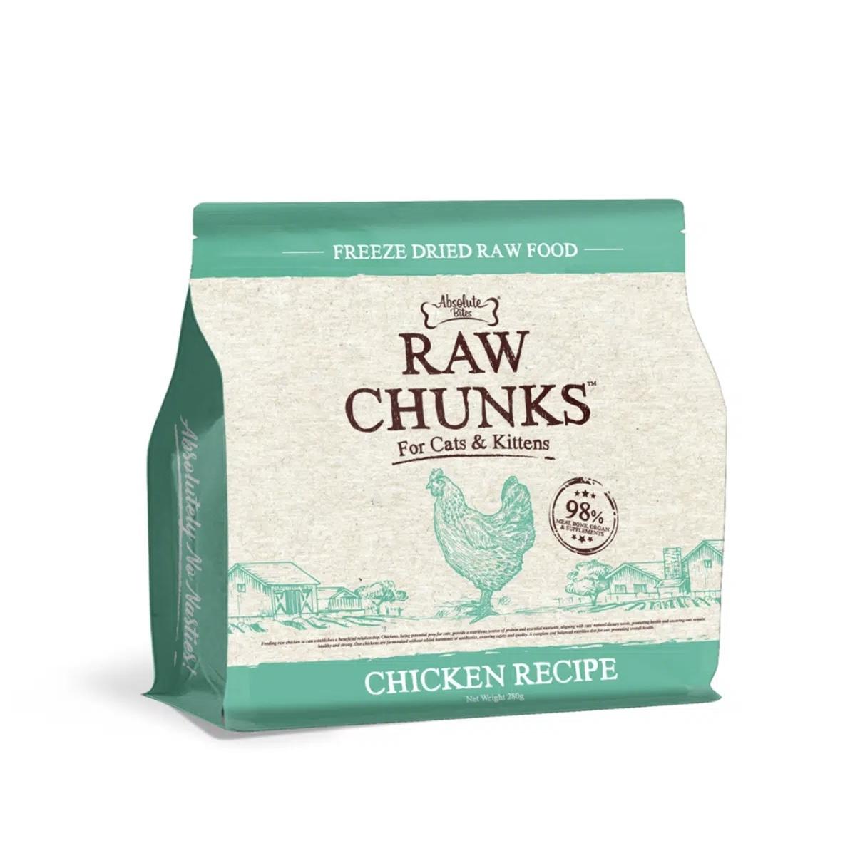 Absolute Bites® Raw Chunks Chicken Recipe For Cats & Kittens is formulated to meet the nutritional levels established by the AAFCO Cat Food Nutrient Profiles for all life stages.