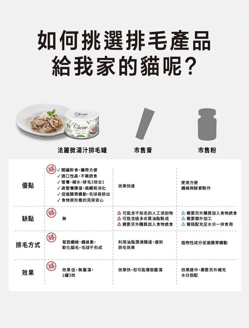 [Cherie 法麗]微湯汁排毛配方|天然吞拿魚佐蟹肉|高纖排毛|80g