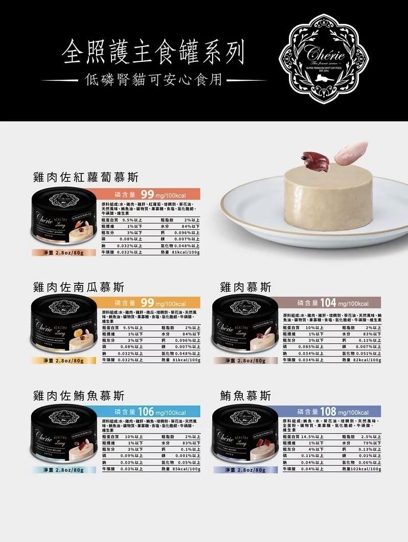 【Healthy Living 全照護主食罐系列】 ????模擬貓咪天然狩獵飲食,全方位機能營養補充! ▲天然食材|野獲鮪魚&無激素雞隻 ▲慕斯絲滑口感|好舔食易吸收 ▲Omega3&6|照護皮毛健康 ▲均衡鈣磷含量|骨骼關節保健 ▲牛磺酸|保護心臟功能 ▲果寡糖|幫助消化 ▲添加雞肝|模仿自然狩獵飲食 ▲低磷低鈉|磷含量250mg/100kcal以下