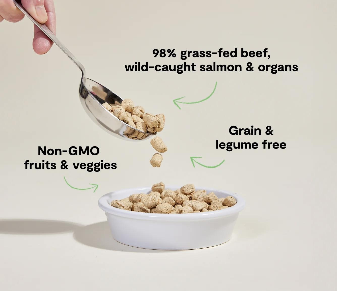 我們的海鮮大餐配方含有特別調配的 98% 野生捕獲的鮭魚、草飼牛肉和營養豐富的器官肉(包括牛心、牛肝和牛骨),是貓咪無法抗拒的真正獵物模式飲食。