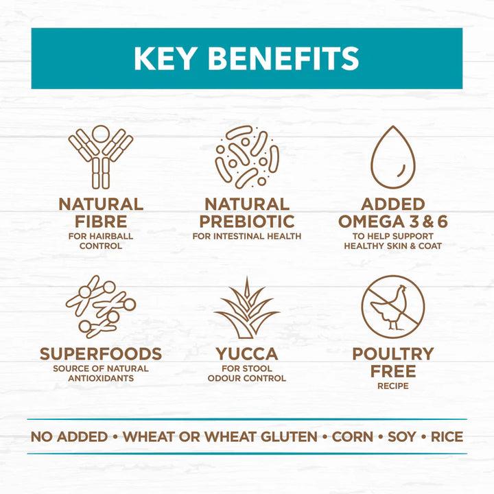 澳洲肉類是我們的第一大原料,可提供優質蛋白質,維持瘦肌肉。我們的無穀物海洋魚和鮭魚貓配方不含家禽,專為對家禽蛋白敏感的貓量身定制。海魚是蛋白質的重要來源,有助於維持強壯的肌肉。鮭魚是新型蛋白質和脂肪酸的重要來源,有助於維持健康的皮膚和皮毛。
