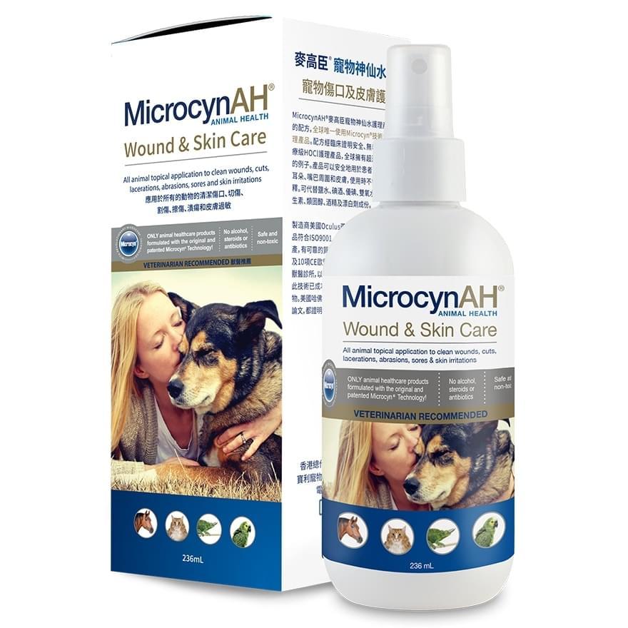 MicrocynAH®麥高臣寵物神仙水護理產品系列的配方,全球唯一使用Microcyn®技術的動物護理產品。配方經臨床證明為安全、無毒和有效的醫療級HOCI護理產品,全球擁有超過千萬個康復的例子。產品可以安全使用於患者的眼睛、鼻子、耳朵、嘴的週圍和皮膚,使用時不需要混合和稀釋。可代替鹽水、碘酒、優碘、雙氧水,而且不含抗生素、類固醇、酒精及漂白劑成份。