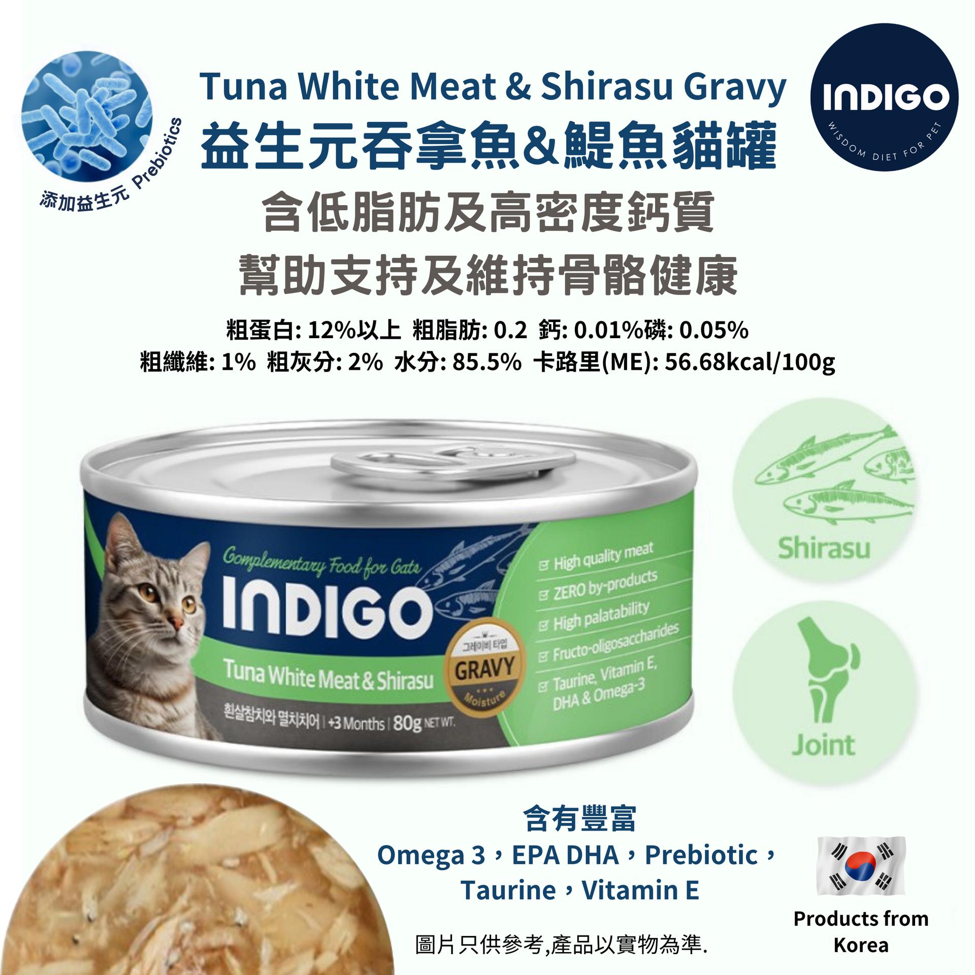[Indigo-貓罐]韓國5星益生元主食罐|吞拿魚+鯷魚|保護關節|(湯汁肉絲/主食)|80g