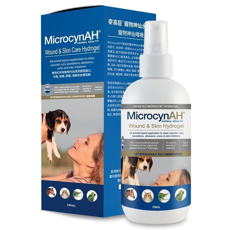 MicrocynAH®麥高臣寵物神仙水護理產品系列的配方,全球唯一使用Microcyn®技術的動物護理產品。配方經臨床證明為安全、無毒和有效的醫療級HOCI護理產品,全球擁有超過千萬個康復的例子。產品可以安全使用於患者的眼睛、鼻子、耳朵、嘴的週圍和皮膚,使用時不需要混合和稀釋。可代替鹽水、碘酒、優碘、雙氧水,而且不含抗生素、類固醇、酒精及漂白劑成份。