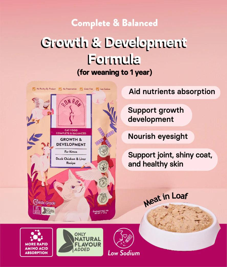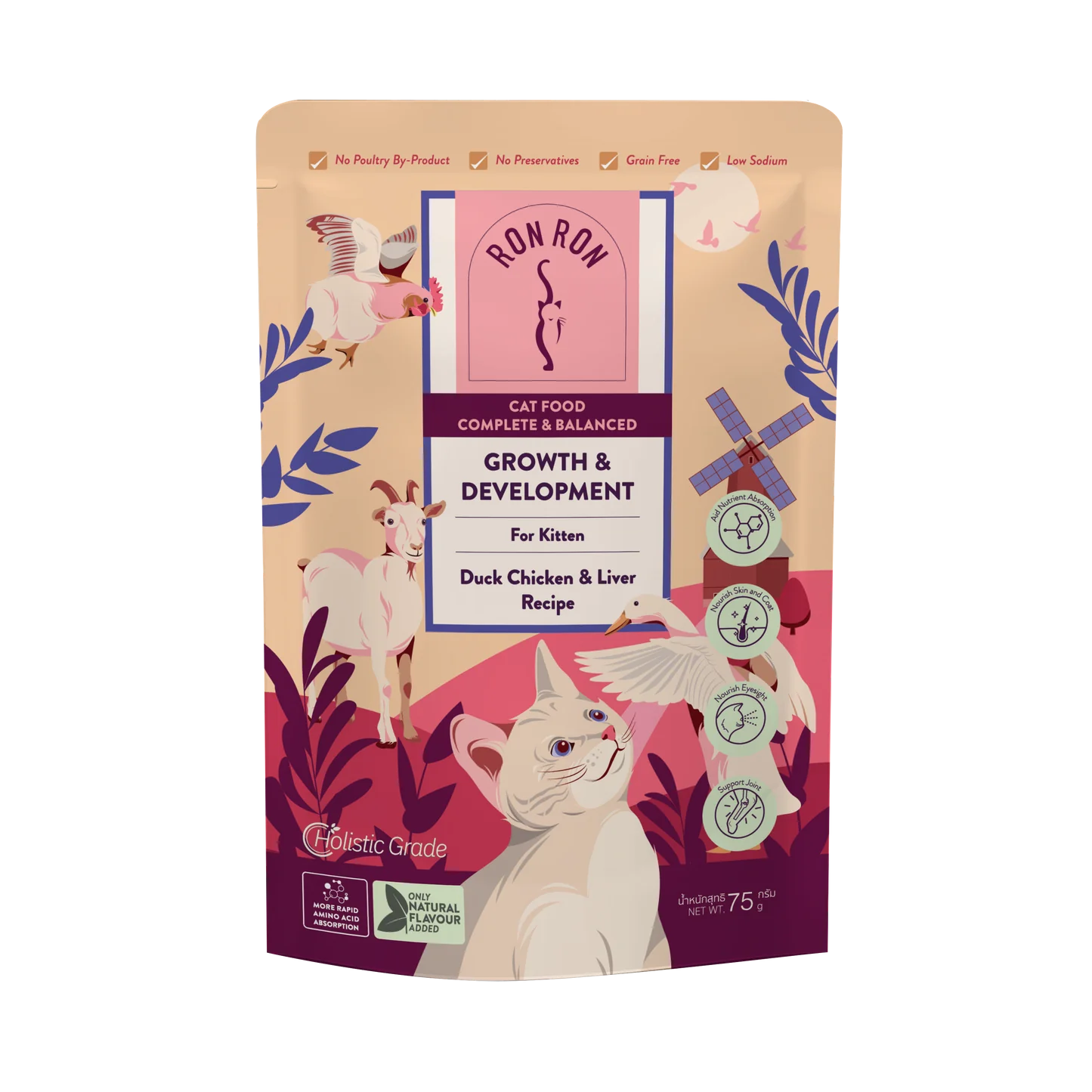 隆重介紹RonRon的鴨肉和雞肉,以綿密的羊奶、雞肝和鴨胗醬慢燉而成,帶出濃鬱的奶油和鹹香。它以慕斯的形式呈現,方便小貓咪從碗裡取出咀嚼。