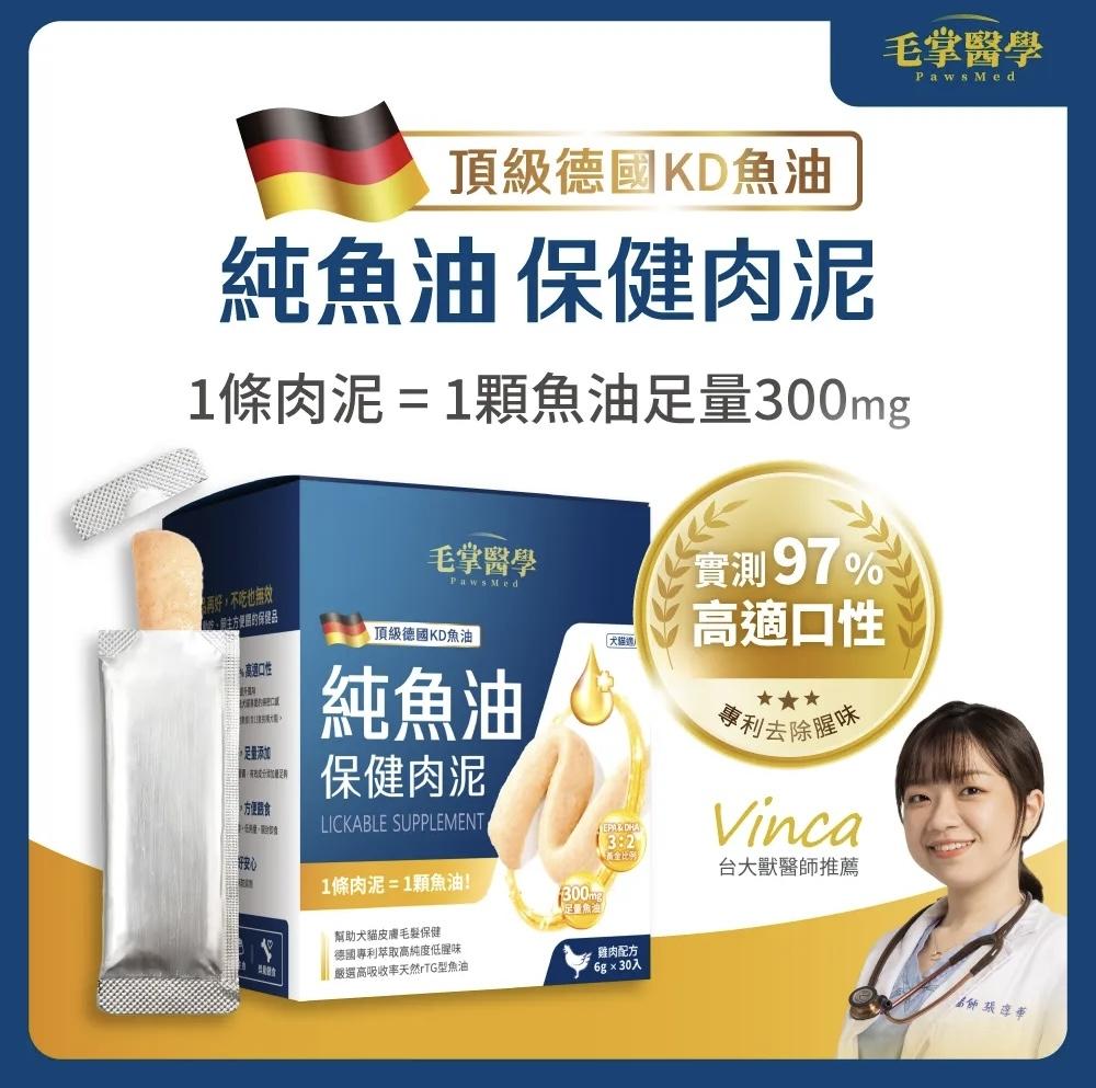 ☑ 一條魚油足量300mg ☑ Omega-3濃度高達93% ☑ 採用高品質德國KD魚油 ☑ 取代膠囊,餵食更容易,一條就滿足一日建議攝取量 ☑ 無添加物,適口好不怕上癮,放心每天吃