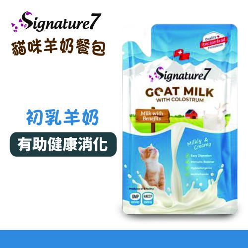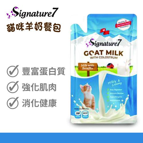 Signature7 貓咪羊奶餐包 70g Shredded Mousse Meal with Goat Milk 初乳羊奶 健康消化 Milk with Benefits 鮮肉慕絲及純淨羊奶 - 豐富蛋白質 - 強化肌肉 - 消化健康 成分 羊奶、麥芽糊精、果寡糖、初乳、牛磺酸、葵花籽油 分析成分 粗蛋白 (最少) 3.5% 熱量 (ME) 63.5 kcal/100g 泰國製造 #營養分析及成份, 請以包裝說明為準