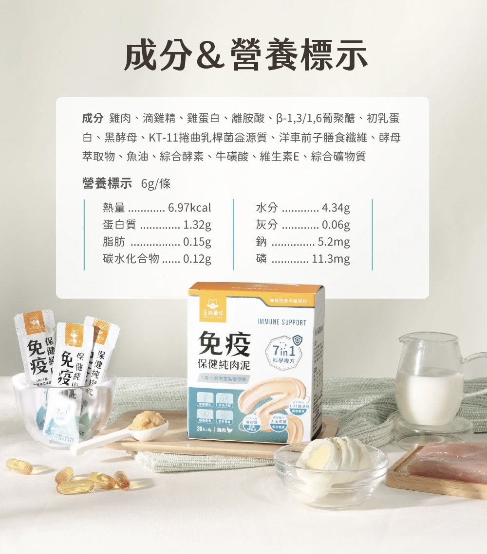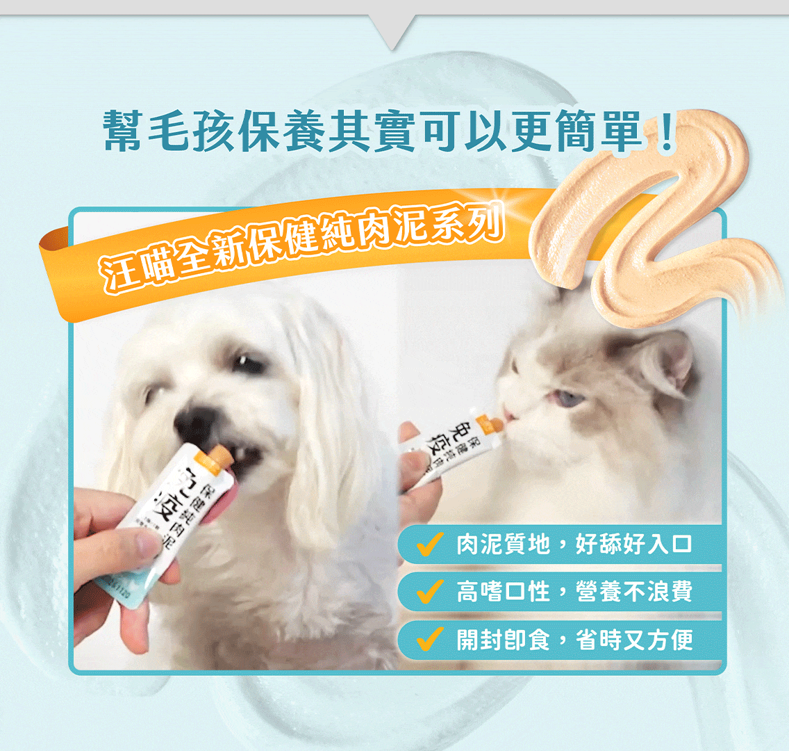 可以!保健肉泥設計為「可單獨使用,也能搭配其他保健品」,特別適合忙碌、外出或無法拌粉時靈活補充。若已經有吃免疫相關保健品,每日最多餵一條保健肉泥作為加強即可,不建議過量。