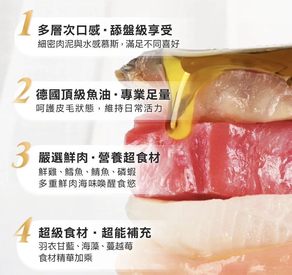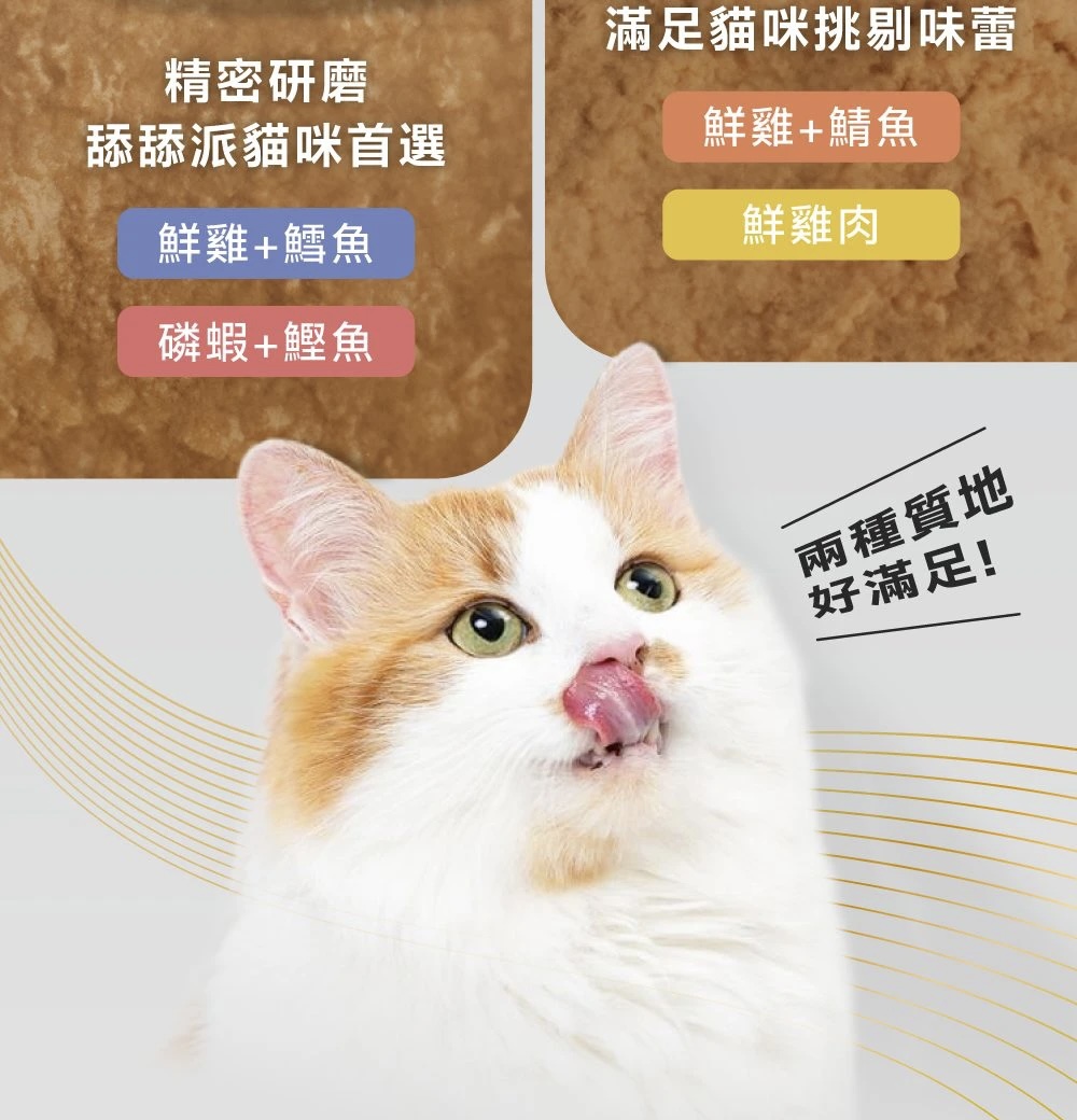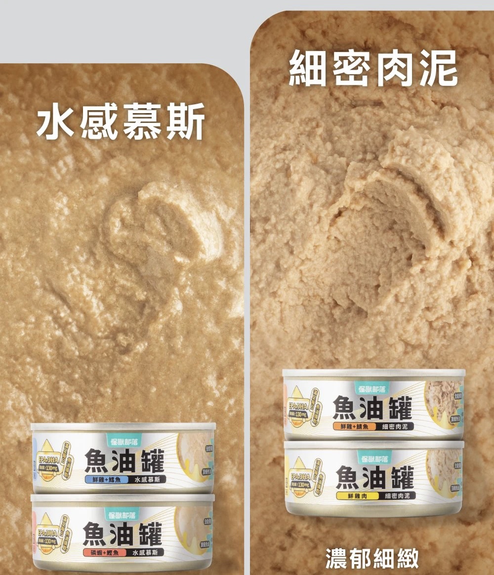 魚油罐的水感慕斯/細密肉泥質地本身很好舔食,但若家長想要讓小怪獸多喝水,也可以再依小怪獸的接受程度添加水分喔!