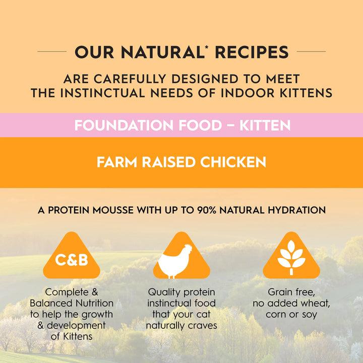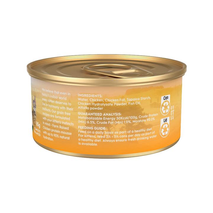 主原料採用農場飼養雞肉,營養純淨,提供成長所需的優質蛋白與能量來源,搭配維生素、礦物質及苜蓿草,支持腸道健康與身體發育,由寵物營養專家精心設計,符合 AAFCO 幼貓營養標準,讓貓咪健康成長、活力滿分。