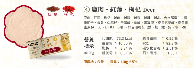 [Momo Care]養心滋膳系列|肉泥營養主餐罐|鹿肉・紅藜・枸杞|【體力強化・氣血支持】|110g|台灣製