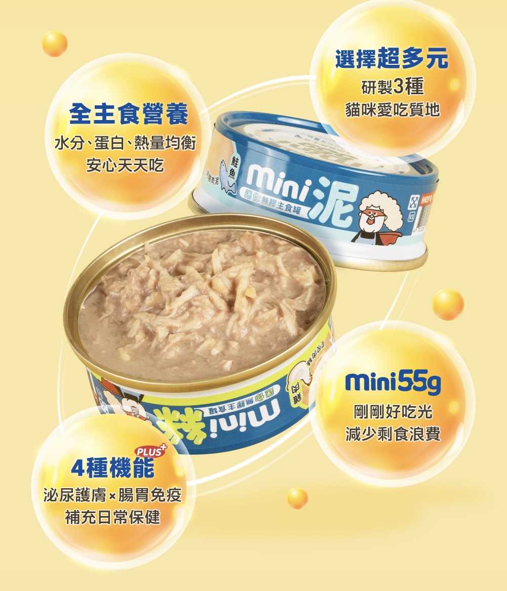 專為乾糧貓打造「多種口感」的迷你主食罐