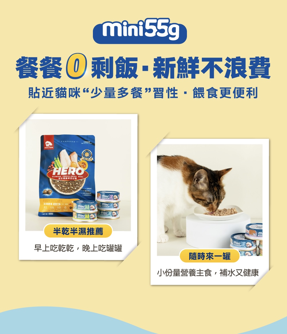 [Heromama]無膠迷你主食罐|綿密紮實[+泌尿護膚配方]|雞肉|55g|(肉泥)