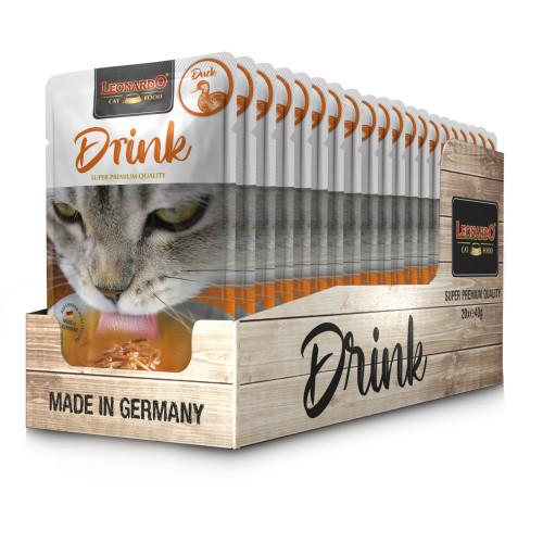 Leonardo Drink 德國製造 成貓濕糧 湯包系列 40g 鴨肉配方湯包 Drink Duck (Drink mit Ente) - LEONARDO Drinks 鼓勵貓喝水。充足的水攝入量支持泌尿系統的功能。 - 成年貓的補充飼料。鼓勵飲用,是補充乾糧的理想選擇。 - 除了完整的食物(乾糧或濕糧)外,每天給您的貓提供 1 - 2 袋。 - 使用前搖勻。應隨時提供新鮮的飲用水。 成分 成分 雞肉鴨肉湯(84%);雞肉(9%);鴨肉(6%);礦物質(1%) 分析成分 蛋白質 5.5%; 脂肪 0.6%; 粗灰分 0.3%; 粗纖維 0.1%; 水分 92% 添加劑(每公斤) 營養添加物:牛磺酸 1,000 毫克 https://www.leonardo-catfood.com/ 德國製造 #營養分析及成份 請以包裝說明為準