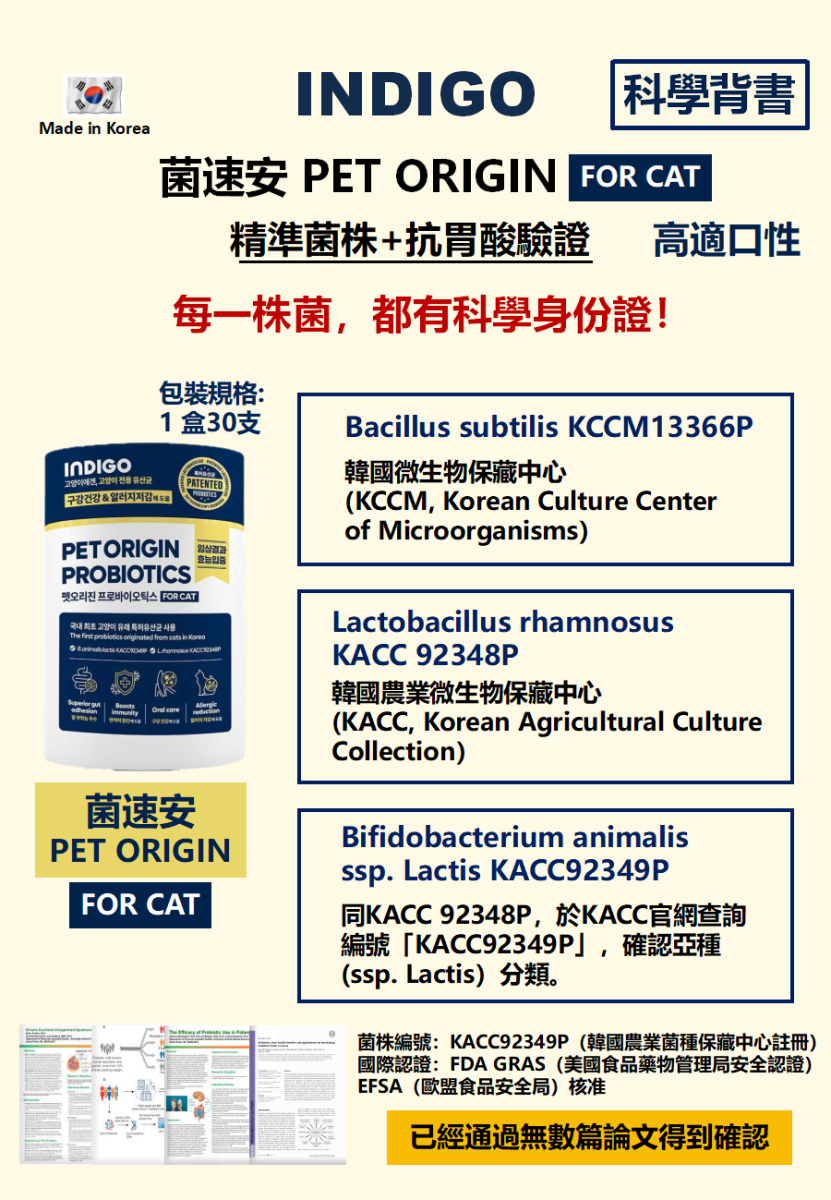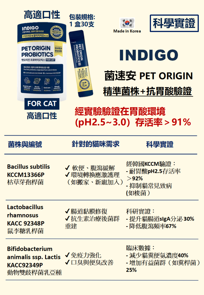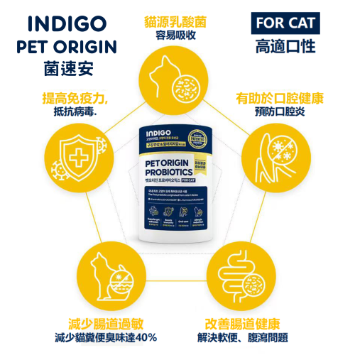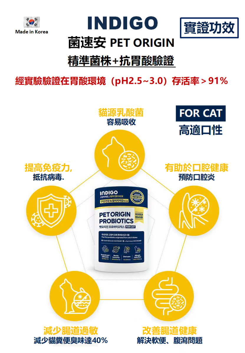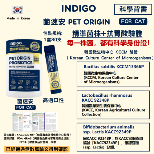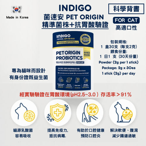 [Indigo]菌速安|貓用|益生菌 (身份專利認證益生菌)|60g (2g X30ea獨立包裝)|韓國製