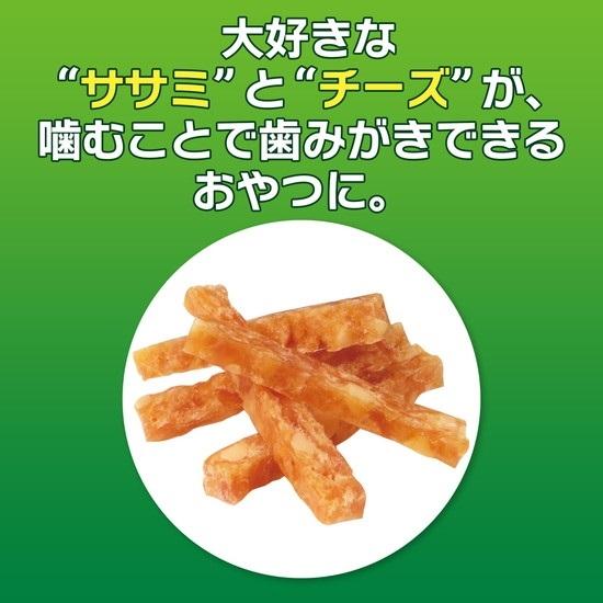 | 表示成分 | 鶏ささみ、牛皮、チーズ、かつおオイル、でん粉類、食塩、ビール酵母、水あめ、魚たん白加水分解物、脱脂大豆、大豆油、グリセリン、ソルビトール、トレハロース、ポリリン酸Na、増粘安定剤(アルギン酸Na)、ピロリン酸Na、調味料、酸化防止剤(エリソルビン酸Na)、保存料(ソルビン酸K)、微粒二酸化ケイ素、メタリン酸Na、ポリリジン |