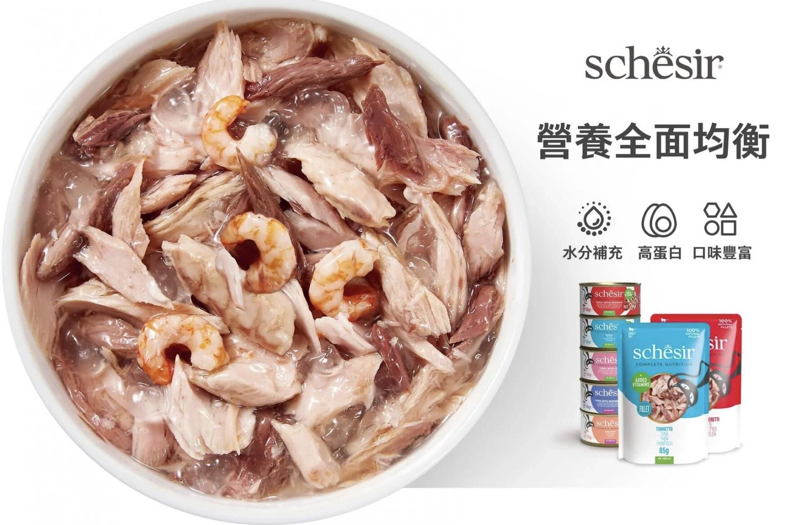 Schesir 每一款配方均加入 維他命、礦物質及牛磺酸,提供全面均衡營養,支持活力與健康,迎合即使是最挑嘴貓咪的口味。