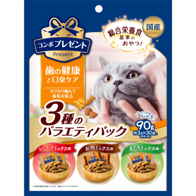 【シーフードミックス味】穀類(トウモロコシ、コーングルテンミール、小麦粉、パン粉)、肉類(チキンミール、牛肉粉、豚肉粉、チキンレバーパウダー)、油脂類(動物性油脂、植物性油脂)、魚介類(フィッシュパウダー、フィッシュミール、エビパウダー、カニエキスパウダー、フィッシュエキスパウダー、マグロエキス、カツオ粉末、小魚粉末、マグロ節粉、カツオエキス、シラスパウダー)、脱脂大豆、ビール酵母、卵黄粉末(グロビゲンPG)、オリゴ糖、野菜類(トマト、ニンジン、ホウレンソウ)、クランベリーパウダー、ミネラル類(カルシウム、リン、カリウム、ナトリウム、クロライド、鉄、銅、マンガン、亜鉛、ヨウ素、コバルト)、アミノ酸類(タウリン、トリプトファン、メチオニン)、ビタミン類(A、B1、B2、B6、B12、D、E、K、ニコチン酸、パントテン酸、ビオチン、葉酸、コリン、アスコルビン酸カルシウム)、pH調整剤、酵母細胞壁、着色料(二酸化チタン、食用赤色102号、食用赤色106号、食用黄色5号)、調味料、酸化防止剤(ミックストコフェロール、ローズマリー抽出物、ハーブ抽出物)、バチルスサブチルス(活性菌)、グルコサミン、コンドロイチン【お肉ミックス味】穀類(トウモロコシ、コーングルテンミール、小麦粉、パン粉)、肉類(チキンミール、牛肉粉、豚肉粉、チキンレバーパウダー、ビーフエキスパウダー)、油脂類(動物性油脂、植物性油脂)、魚介類(フィッシュパウダー、フィッシュミール、フィッシュエキスパウダー、マグロエキス、カツオ粉末、小魚粉末、マグロ節粉、カツオエキス、シラスパウダー)、脱脂大豆、ビール酵母、卵黄粉末(グロビ