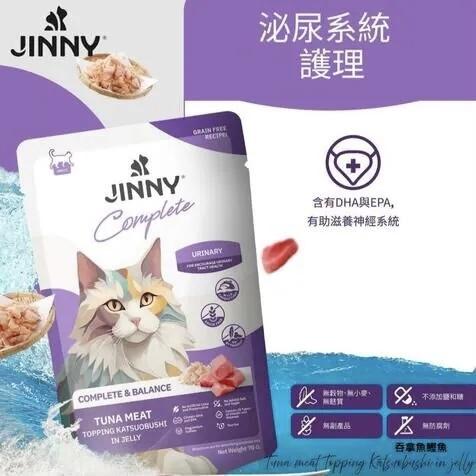 [Jinny Complete]無穀物營養主食餐包(貓)|成貓|吞拿魚 + 鰹魚乾|呵護泌尿系統|70g|(啫喱肉絲)