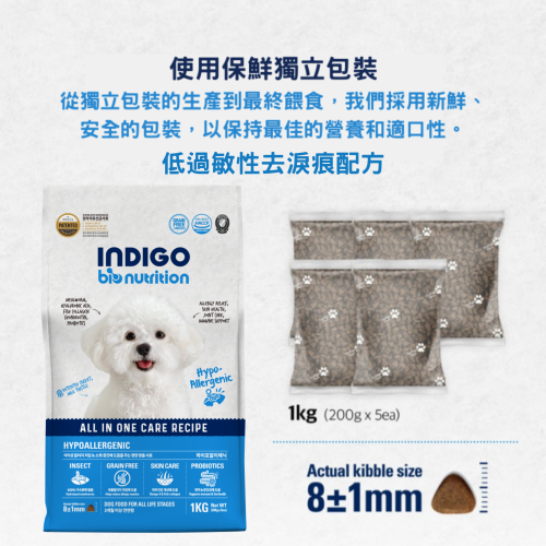 [INDIGO-狗糧]天然有機無穀物|低過敏性去淚痕配方|昆蟲蛋白|特惠裝4kg (1kg x 4包)|韓國製